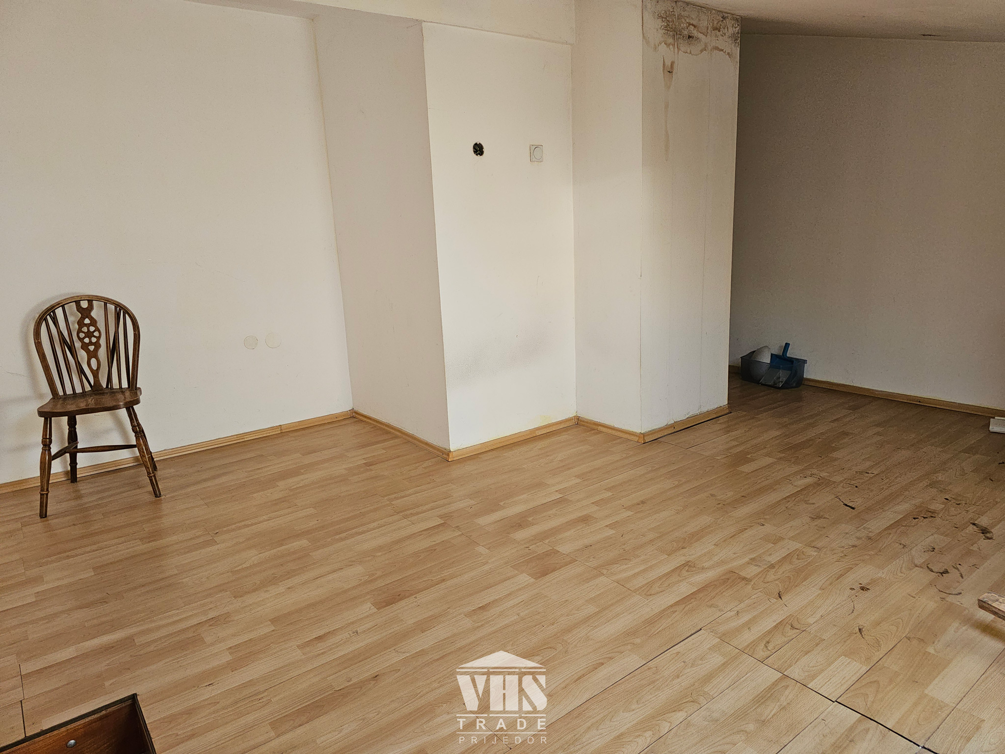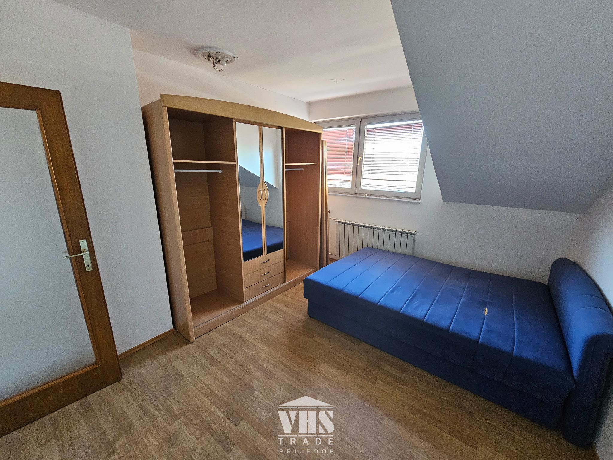Stan je uknjižen na 55m2, posjeduje i dodatnu sobu u potkrovlju kvadrature 17m2, koja nije uknjižena.