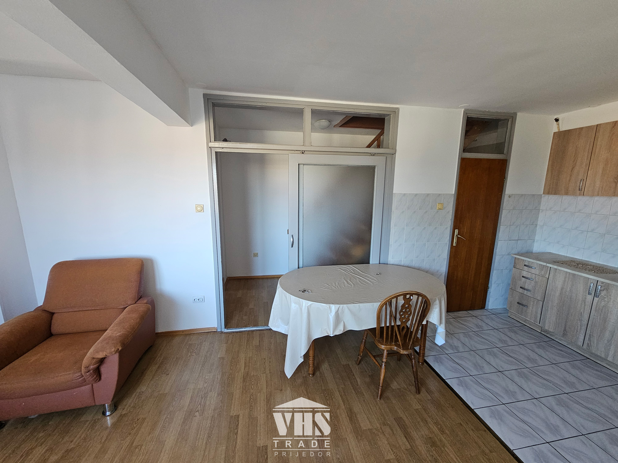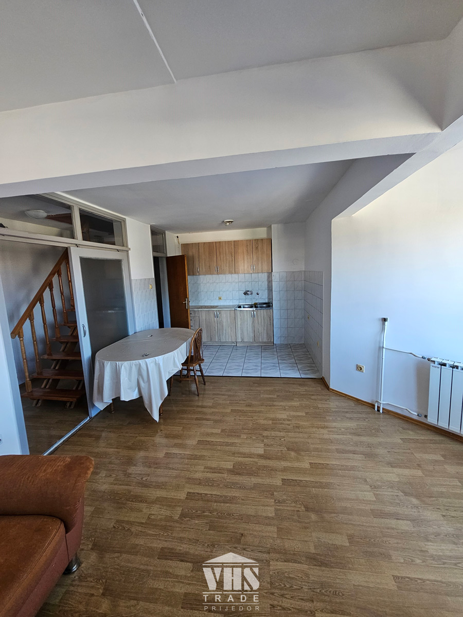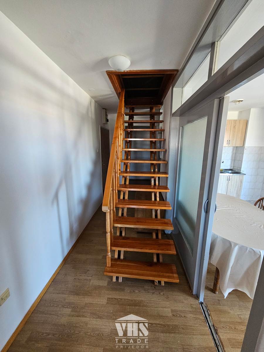 Strukturu stana čini: hodnik, dnevni boravak, kuhinja sa trpezarijom, spavaća soba, kupatilo i soba u potkrovlju.